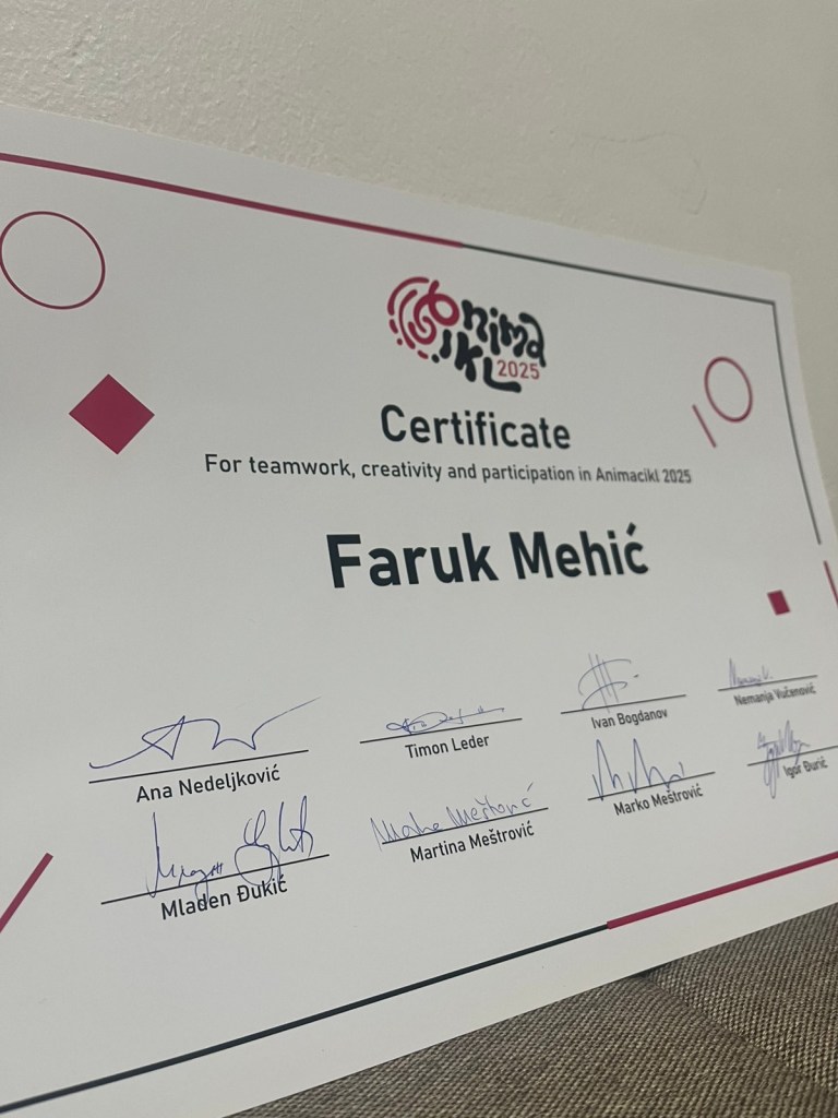 I’m truly honored to have been invited to take part in “Animacikl”, organized by DARES – the Animation Society of the Republic of Srpska, with support from the Audio-Visual Center of the Republic of Srpska, the Student Cultural Center UNIBL, and the Academy of Arts UNIBL. It was an exciting challenge to compose music during the 48-hour animation marathon, where teams had to create short animated films from scratch. Collaborating with the teams was a real pleasure, and I’m proud to have contributed to three films with original music that complements their visual storytelling.